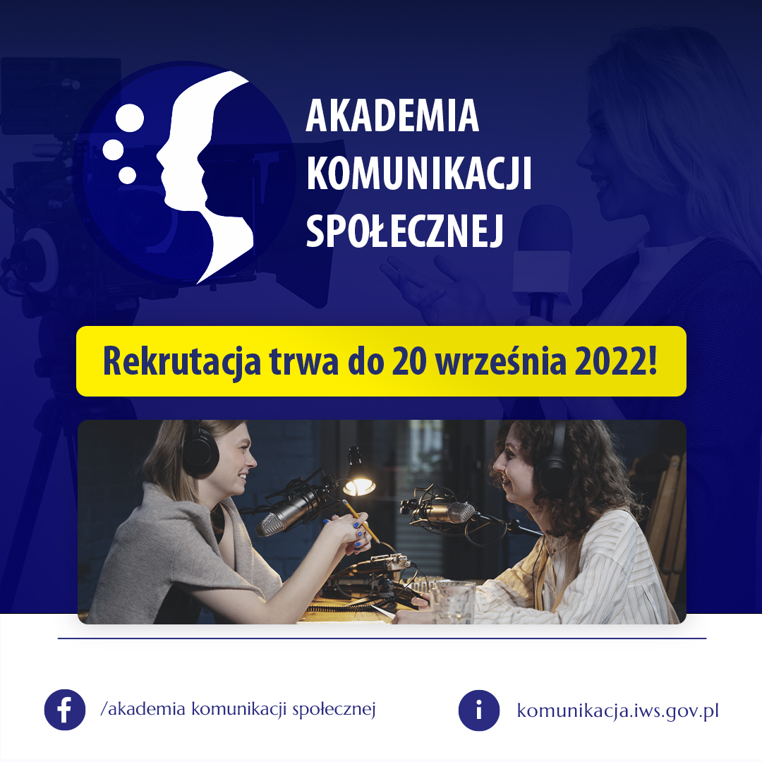 Tylko do 20 września 2022 r. trwa rekrutacja do Akademii Komunikacji Społecznej! Do tego dnia studenci mogą aplikować do udziału w programie. Lista osób zakwalifikowanych zostanie opublikowana najpóźniej do 22 września 2022 r.