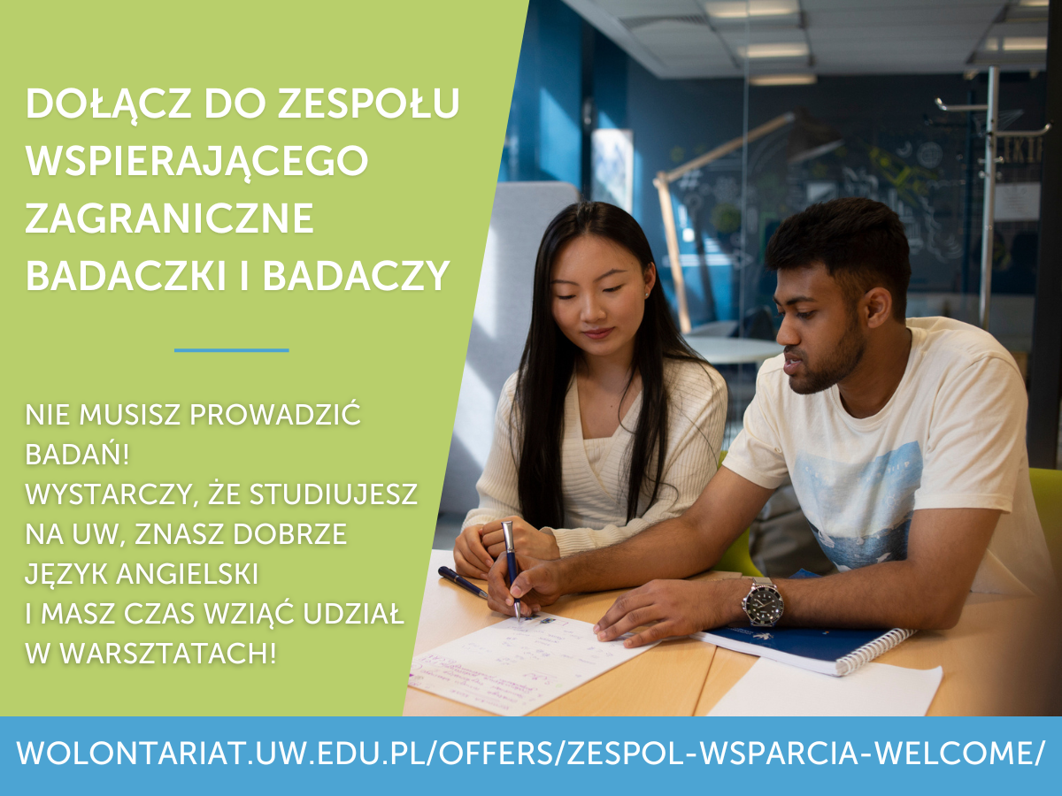 Uniwersyteckie Centrum Wolontariatu zaprasza studentki i studentów UW do wzięcia udziału w inicjatywie realizowanej we współpracy z Welcome Point UW!