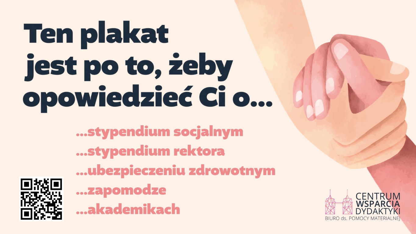 Szanowni Państwo, w ramach Biura ds. Pomocy Materialnej od 17 maja możliwe są konsultacje online skierowane do studentów i doktorantów. Jest to usługa, która ma wyjść naprzeciw w szczególności osobom, które z różnych względów nie mogą odwiedzić biura stacjonarnie, a kontakt telefoniczny lub mailowy nie jest dla nich w pełni satysfakcjonujący.