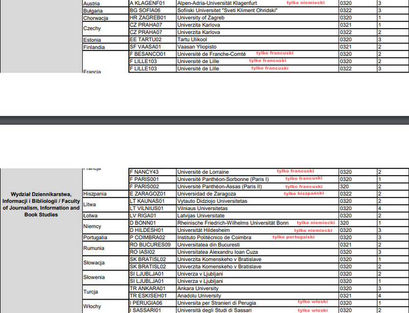 Obecność np. „dziennikarstwa” na uczelni z listy innego Wydziału nie oznacza, że będzie można na nim studiować! Wyjeżdżając z umowy np. Wydziału Zarządzania studiuje się na obcym Wydziale Zarządzania!