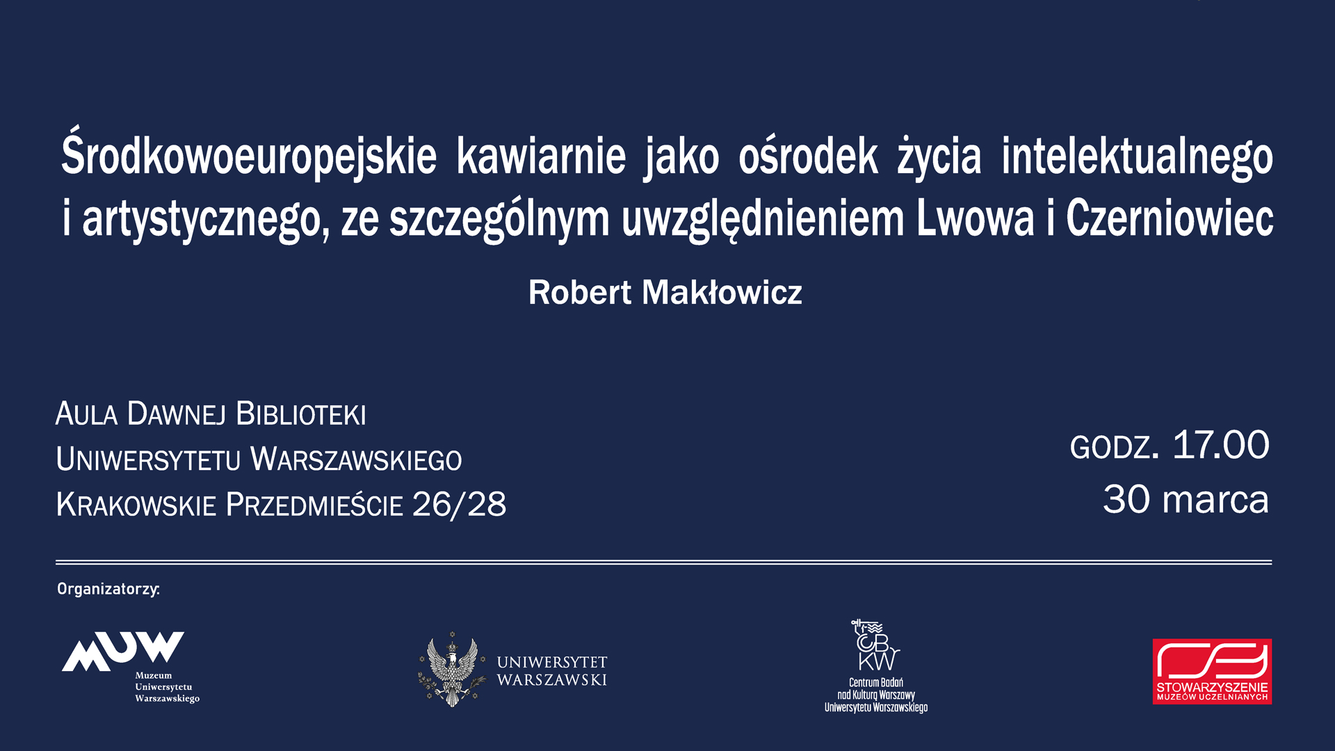 Wykład odbędzie się 30 marca 2022, 17:00, w auli w Dawnej Bibliotece Uniwersyteckiej w Warszawie i transmitowany będzie na uniwersyteckim kanale YouTube.