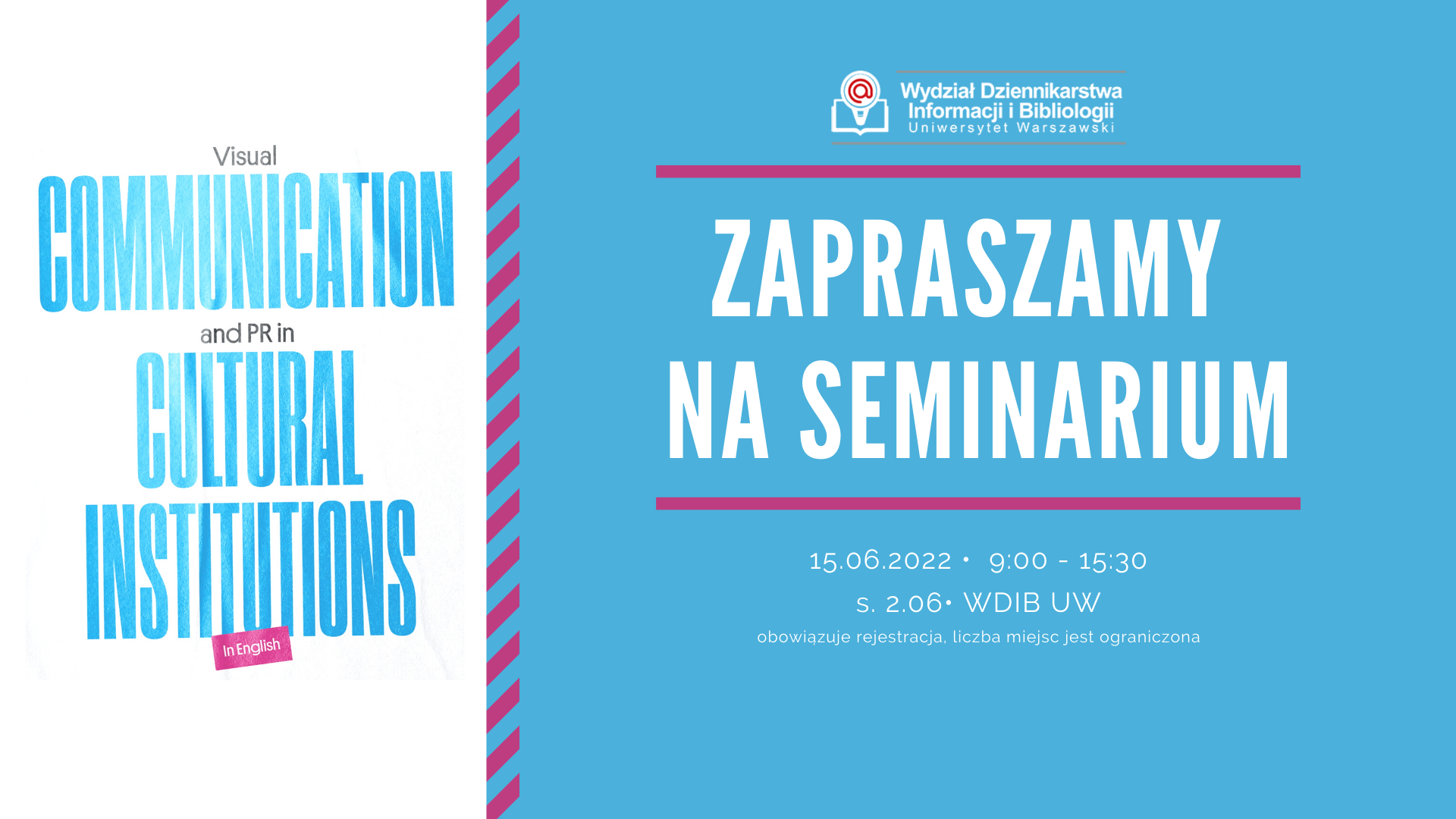 Seminarium odbędzie się 15.06 w godzinach 9:00 - 15:30, w sali 2.06, liczba miejsc jest ograniczona, dlatego obowiązuje rejestracja: https://docs.google.com/forms/d/e/1FAIpQLSd1ehW6vne42y6hbBQe1NNMVQAFpNObOxx5vfSJJb32kMTFzg/viewform?usp=sf_link