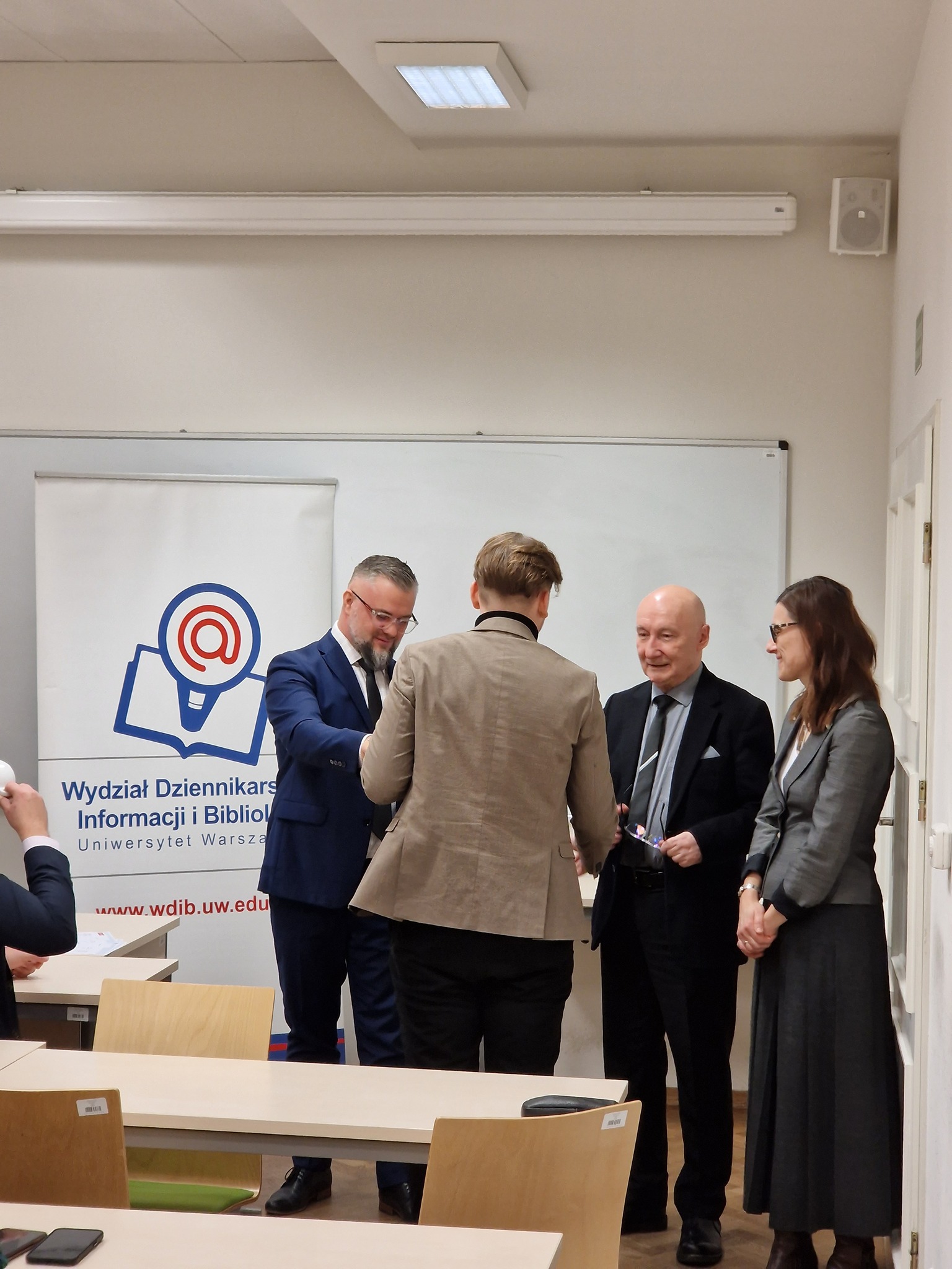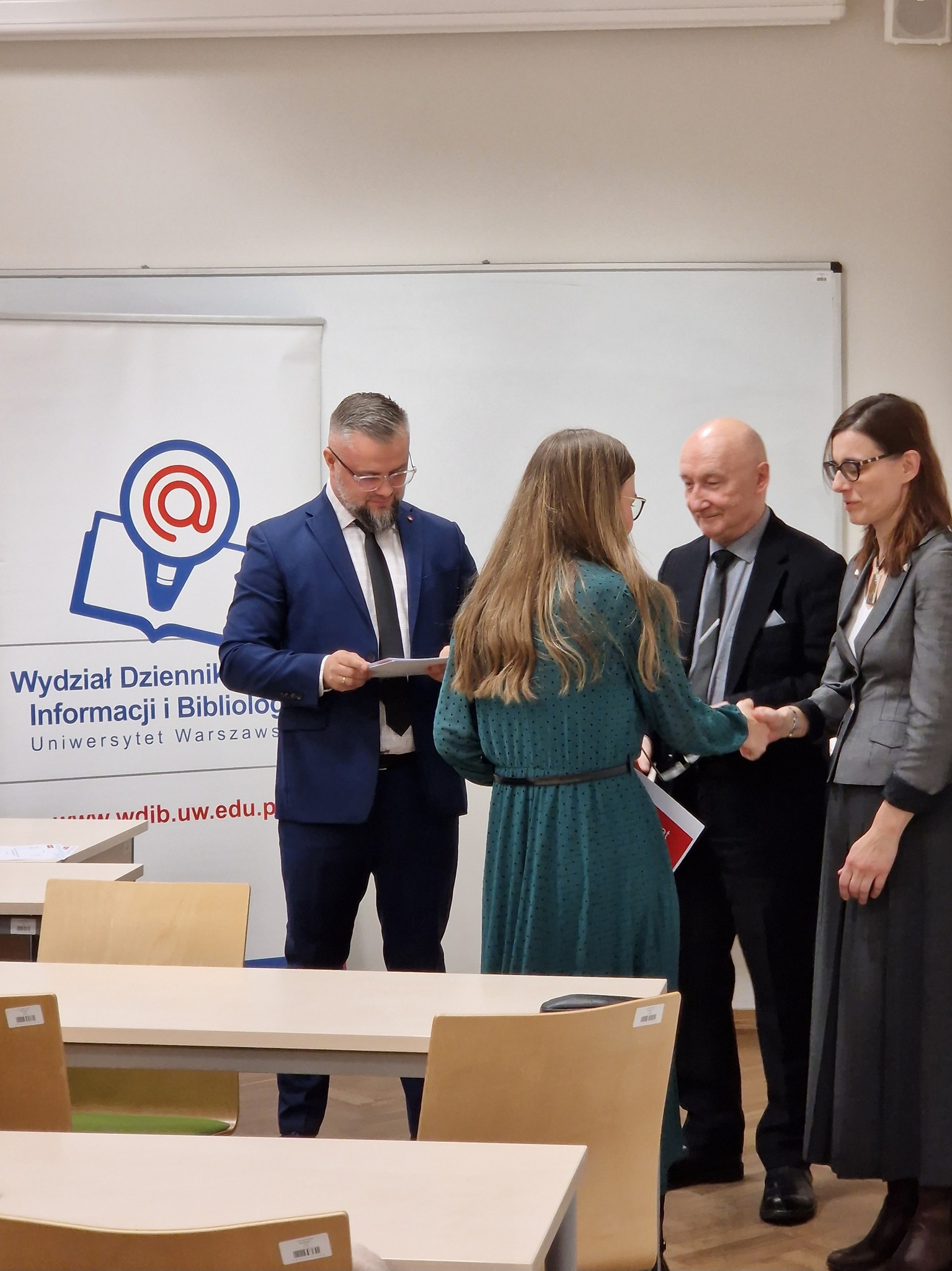 20 grudnia obyło się rozdanie nagród w ramach programu "Nagroda Santander dla studentów Wydziału Dziennikarstwa Informacji i Bibliologii UW 2023."